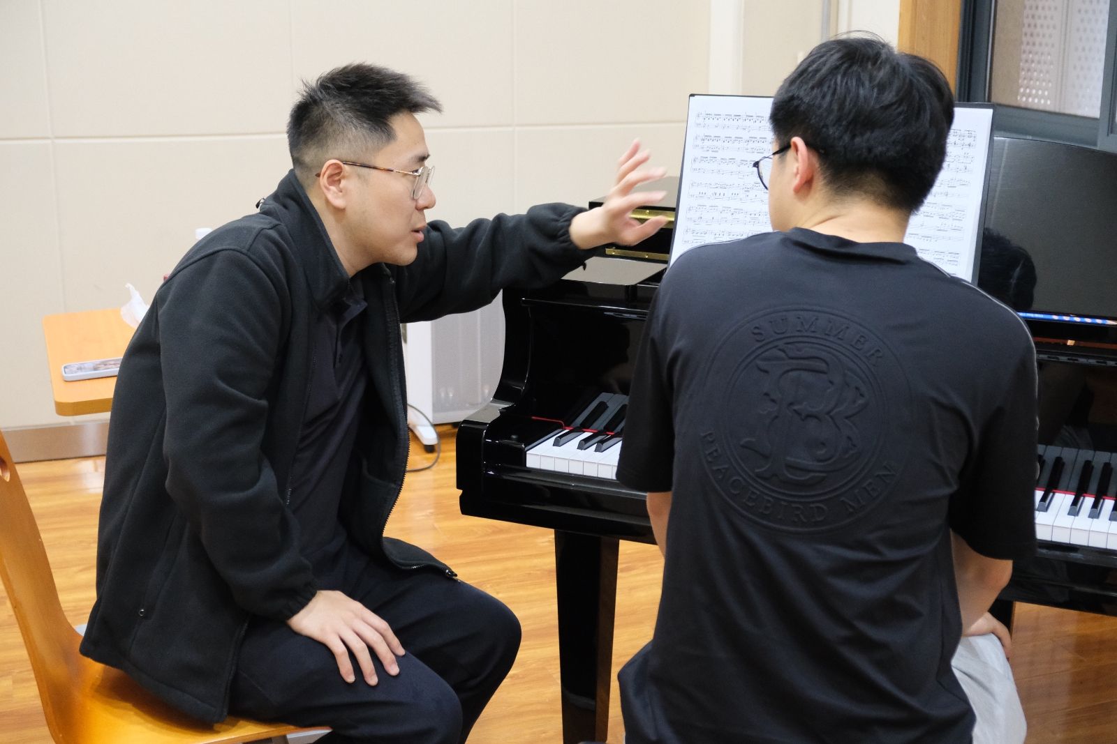 参观结束后,教师们与延安大学鲁迅艺术学院音乐系师生开展教学交流。鲁迅艺术学院院长田大成教授介绍了鲁迅艺术学院的专业设置和发展情况,表达了鲁迅艺术学院对我校教育帮扶的感谢。我校党委教师工作部部长、人事处处长王璐简要介绍了本次青年教师赴延安开展“双实践”工作和我校5.23音乐节活动的相关情况。随后,教师们按专业分成八组,对鲁艺音乐系师生进行教学指导,每位老师根据学生的专业水平,从理论基础夯实、演奏技术指导、日常练习巩固等进行了专业、细致的示范与讲解,令听课师生收获匪浅。