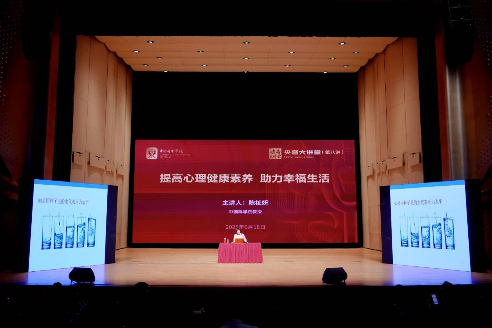 2025年6月18日,星空彩票ios版中心版“央音大讲堂”第8讲,特邀中国科学院陈祉妍教授作为主讲专家,就教职工心理健康、压力情绪调节等方面,做专题授课。通过生动案例与互动实践,为师生带来一场兼具理论性与实用性的心理科普讲座。校领导班子成员、中层干部、各部门教职工、退休干部等400余人,共同聆听讲座。讲座由党委副书记李众主持。