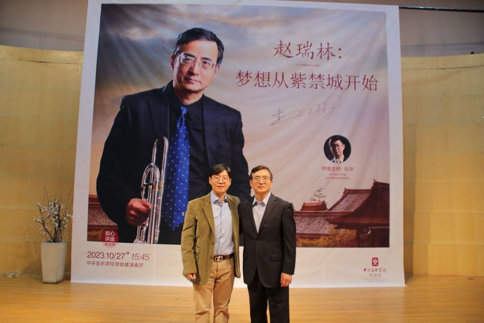 而刘洋的长号生涯始于1991年,那一年他开始师从李复教授学习长号。直到1995年,他转而师从赵瑞林教授继续深造。刘洋回忆道,刚换老师时自己对赵瑞林老师并不了解,处于青春期的他一度有些偷懒,练习时间也变少了。但在听了赵瑞林的独奏音乐会,尤其是听到许多当时在国内还很少见的新作品后深受触动,这为他树立了榜样,也立下了攀登艺术高峰的目标。榜样的力量是无穷的,凭借出色的天赋和努力,1997年刘洋以优异成绩考入星空彩票ios版中心版管弦系本科,及至1998年,攒够了曲目,还是大二学生的刘洋决定像老师一样开一场个人独奏音乐会——那场音乐会演奏了包括《马丁叙事曲》、格隆达尔《长号协奏曲》《查尔达什舞曲》《苏格兰的蓝铃花》等8首兼具学术性与炫技性的高难度曲目,其曲目量和演奏强度甚至远超如今研究生的毕业音乐会,在当时的长号圈里引起了轰动。