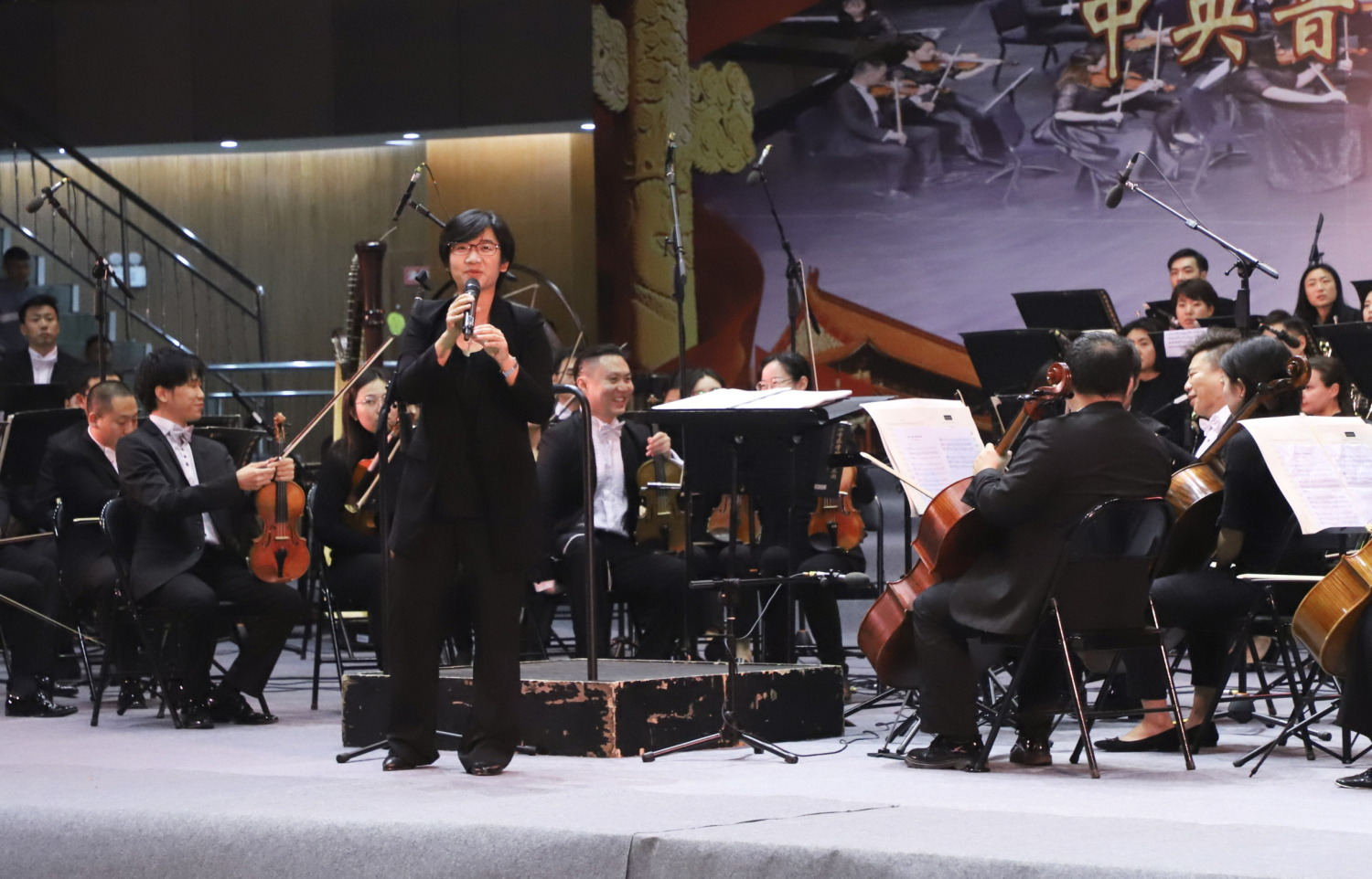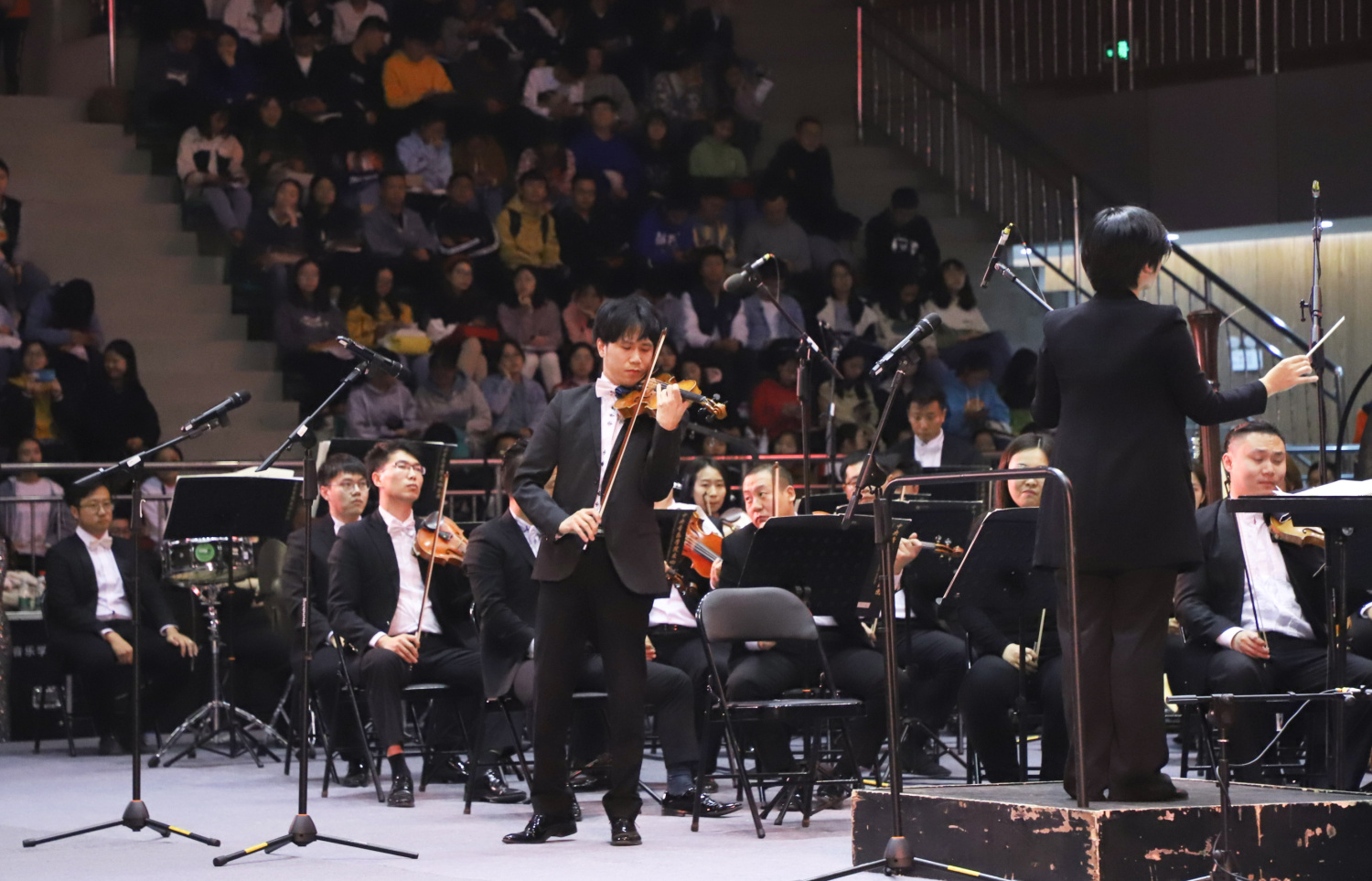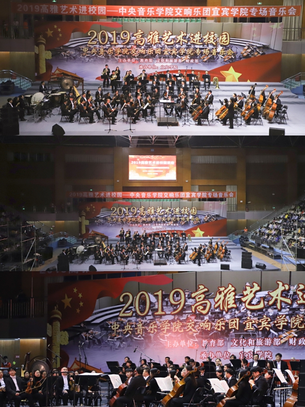 2019年11月4日晚,星空彩票ios版中心版交响乐团新一季“高雅音乐进校园”巡演第一站在四川省宜宾学院拉开帷幕!整晚演出期间,体育馆热烈沸腾,全体欢呼,掀起了该校师生艺术高潮!