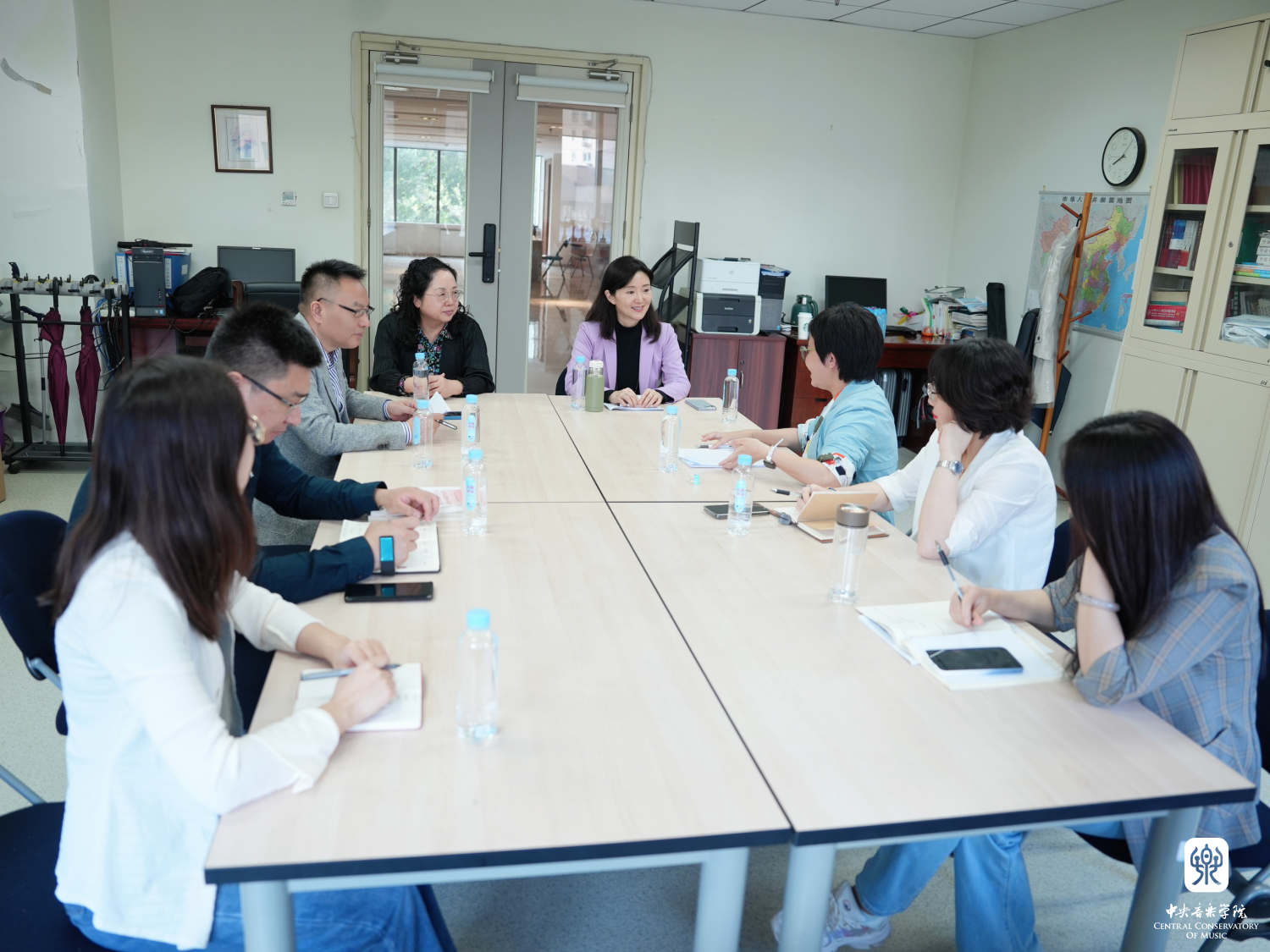 “开学第一课”后,于红梅前往思政部召开现场办公会,了解思政部建设情况及本学期工作开展计划,思政部教师于竞游做了工作汇报。于红梅强调思政课建设事关党和国家培养一代又一代社会主义建设者和接班人,事关民族复兴大任。央音的思政课教学要贴近音乐、贴近音乐院校,有针对性展开教学。同时,思政课教师要走出校园、书房,深入到生活中去,感受新时代伟大成就,把新时代伟大变革讲深刻、讲鲜活、讲生动。