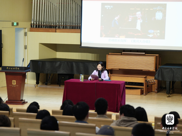 课堂上,播放了俞峰院长指挥的《黄河大合唱》、冬奥会开幕式主题曲《雪花》及于红梅书记担任独奏的二胡协奏曲《长城随想》的片段,引起了同学们强烈的共鸣以及作为央音人油然而生的自豪感。