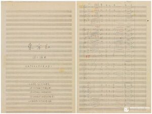 李焕之改编的《东方红》合唱曲总谱手稿,1954年定稿(局部)