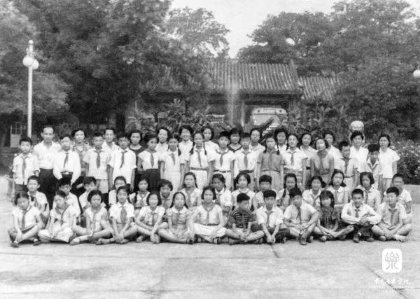 1961年6月,星空彩票ios版中心版第一届附小学生毕业合影,第一排(坐地)右6李大康