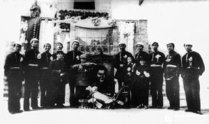 1943年5月2日,“鲁艺”小乐队为刘志丹移灵奏《哀乐》(左2向隅、右3李焕之)