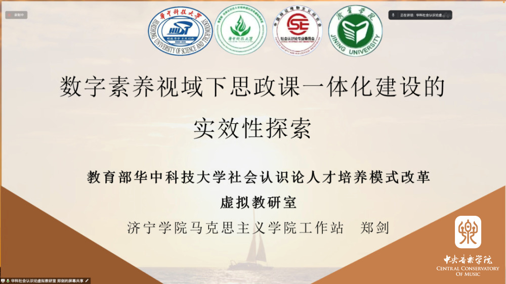 会上,学科协作组成员单位的4位负责人和专家作报告。美术博物馆虚拟策展与美育课程虚拟教研室副主任、中央美术学院艺术管理与教育学院副书记康俐博士作了题为《虚拟策展助力美育》的报告;社会认识论人才培养模式改革虚拟教研室专家、济宁学院马克思主义学院郑剑副教授作了题为《数字素养视域下思政课一体化建设的实效性探索》的报告;播音主持艺术虚拟教研室负责人、中国传媒大学播音主持艺术学院党委书记李洪岩教授作了题为《语言传播的功能与拓展》的报告;音乐学专业虚拟教研室负责人、四川师范大学音乐学院院长李亚梅教授作了题为《云上五线,共享共建——四川师范大学“音乐学专业虚拟教研室”建设思路与实践》的报告。