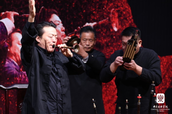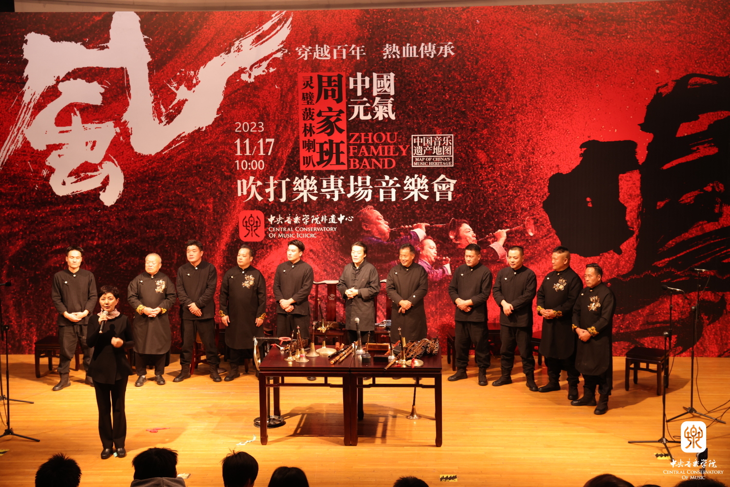 2023年11月17日,应我校非遗中心邀请,安徽灵璧菠林喇叭艺术代表性传承人周本鸣带领“周家班”在我校成功举办吹打专场音乐会及工作坊。