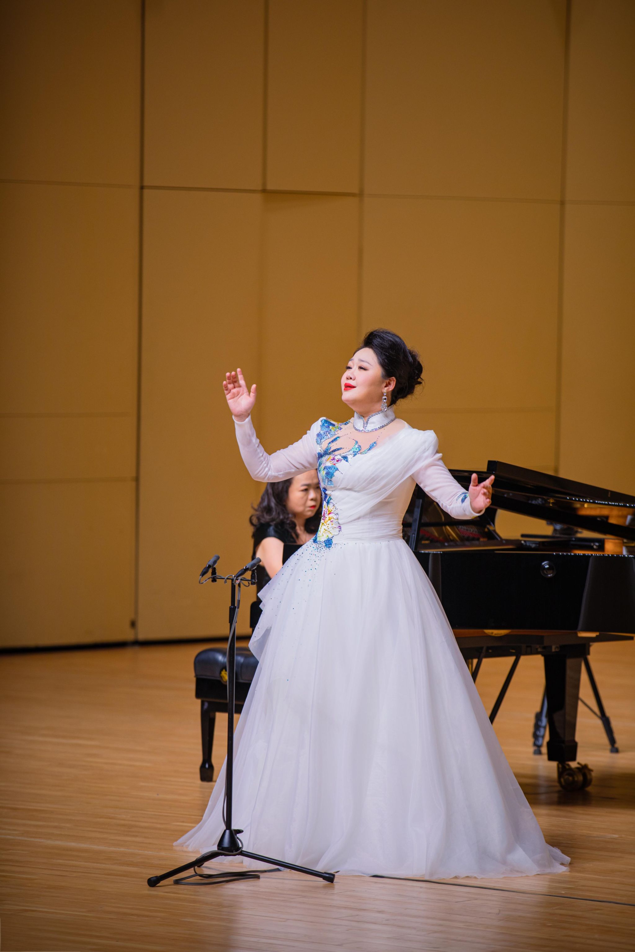 青年教师女高音张怡首先带来一首荡气回肠的《绒花》,用饱含深情的歌声亲切地表达出对英雄的赞美,女中音杨子老师将那首《祖国,我的最爱》,用自己宽厚的嗓音唱出了对祖国这片土地的热爱和自豪。