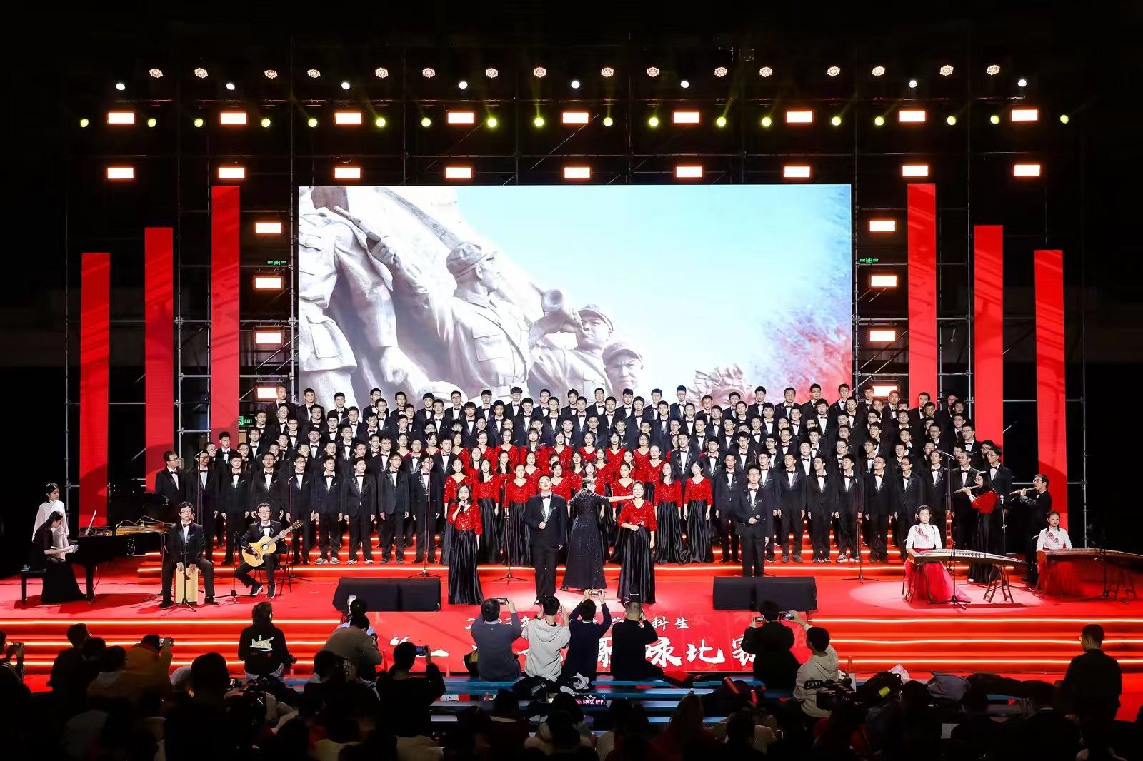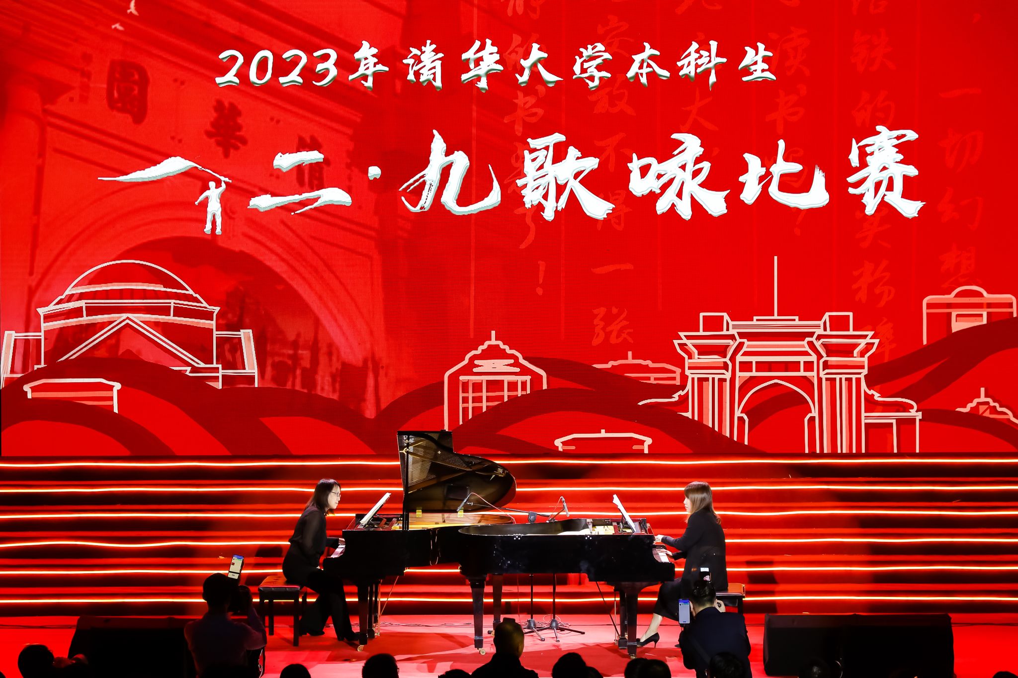 2023年12月9日,由我校音乐教育学院派员全程参与支持的清华大学本科生“一二·九”歌咏比赛成功举办,两校师生共同打造并呈现了一场高起点、高水平文艺活动。活动组织得当、效果显著,师生们不仅在交流与协作中不断学习并感悟“一二·九”精神,还在艺术实践中汲取“勤奋、求实、团结、进取”与“自强不息、厚德载物”的力量,并由此结下深厚友谊。众多学子籍此传承中华文化,赓续革命薪火。此次歌咏比赛,由音乐教育学院师生辅导的清华美院“美美有声”合唱队获甲组综合三等奖、甲组最佳人气奖、甲组艺术水准奖、甲组主题教育奖;电子工程系合唱队获乙组二等奖、乙组组织育人奖;医药系、机械系、交叉信息研究院“医机药茶”合唱队获乙组综合二等奖、乙组艺术水准奖。赛后,我院李昕书记、孙懿坤副教授为清华师生呈现了精彩的双钢琴《中国西部组曲》表演。据统计,在歌咏比赛筹备的三个月时间里,音乐教育学院师生累计为清华大学相关合唱队提供约40场主题讲座、合唱排练和美育活动。