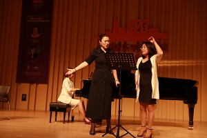 孙媛媛教授以深厚的声乐造诣,对学生们进行了细致入微的指导。在对作品的音乐处理、歌曲的旋律性、整体的连接性、曲目的结构等方面进行了深入浅出的讲解。在表现音乐的技术细节方面给予了科学有效的方法和建议,并进行示范。孙媛媛教授在学生的咬字、腔体平衡、角色理解、歌唱情绪等方面做了生动具体的指导,让学员们深刻的理会到歌唱的新境界。孙媛媛教授和张佳佳副教授的完美合作,博得了在场师生的赞叹和掌声。