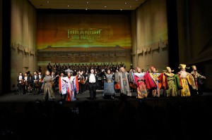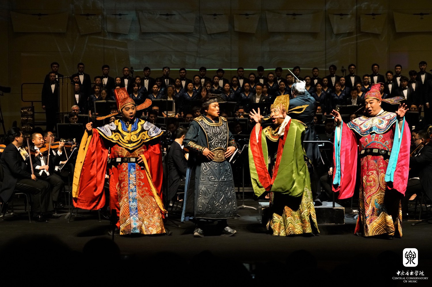 “一带一路”《图兰朵》歌剧音乐会4月30日晚震撼上演。俞峰院长亲自登台执棒指挥星空彩票ios版中心版交响乐团、星空彩票ios版中心版合唱团、 星空彩票ios版中心版少年合唱团演出,合唱指挥陈冰。王威饰演图兰朵,许昌饰演卡拉夫,宋元明饰演柳儿,赵明饰演铁木尔,孙砾饰演平,刘怡然饰演彭,李想饰演庞,高士棋饰演皇上,陈思宇饰演传令官。