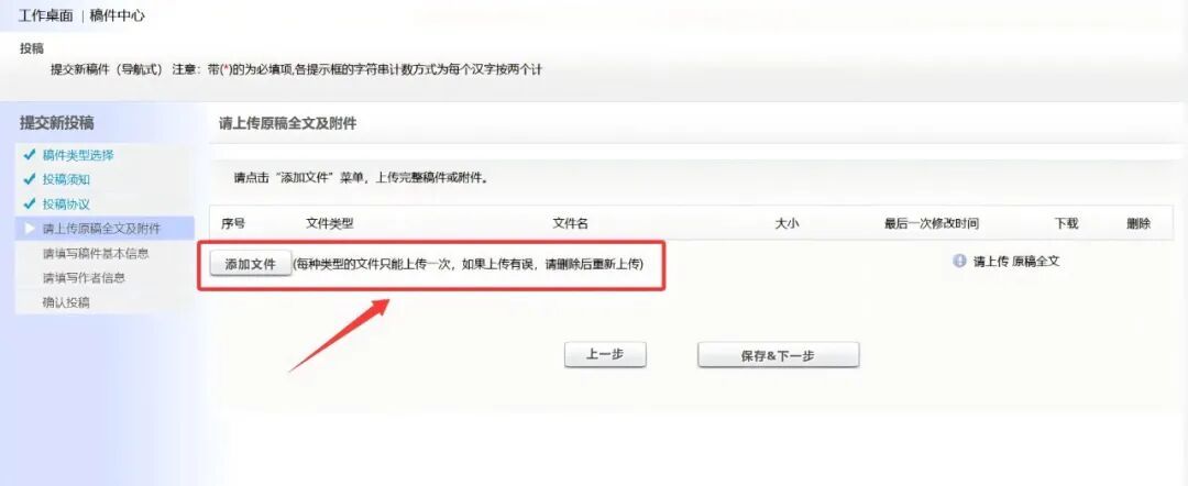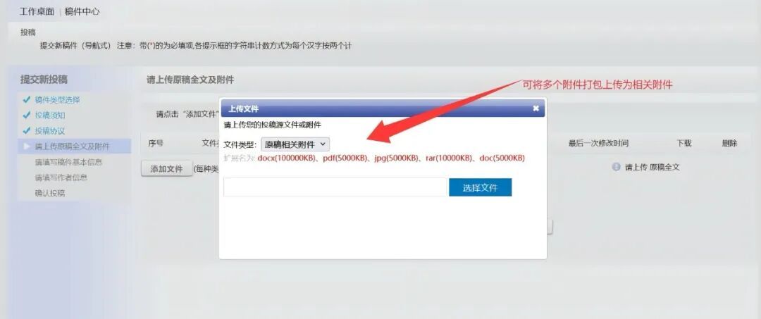 ● 上传【投稿文件】。