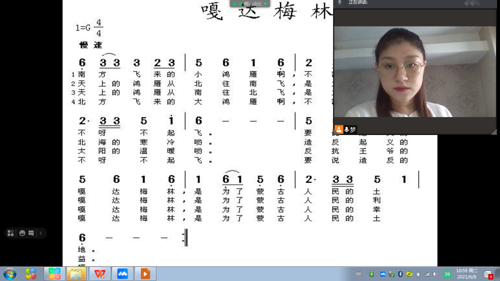 在星空彩票ios版中心版发起主办的网络“云端音乐课”教学活动中,我校音乐教育学院从2020年下半年开始对河北省邢台市威县二中艺术特长班进行教学帮扶工作,并于2021年4月起由6名教师进行每两周一次的线上常态化音乐课教学,课程对象为高二艺术特长班的学生。恰逢建党100周年之际,老师们选择了《今天是你的生日》《二月里来》《嘎达梅林》《游击队歌》等歌曲作为素材,从文化背景、歌曲演唱、音乐活动、音乐基础知识等不同的内容与角度入手,进行了生动精彩的课堂教学与展示,帮助学生提高音乐能力与素养,让他们对爱党爱国的精神有了更深层次的感触和理解。课后,参与旁听的当地教师表达了对我校音乐教育学院的感谢,并期望借此机会能与我院教师长期沟通交流,开展更多的教学研学互动工作,提升当地音乐教师教研与教学能力。