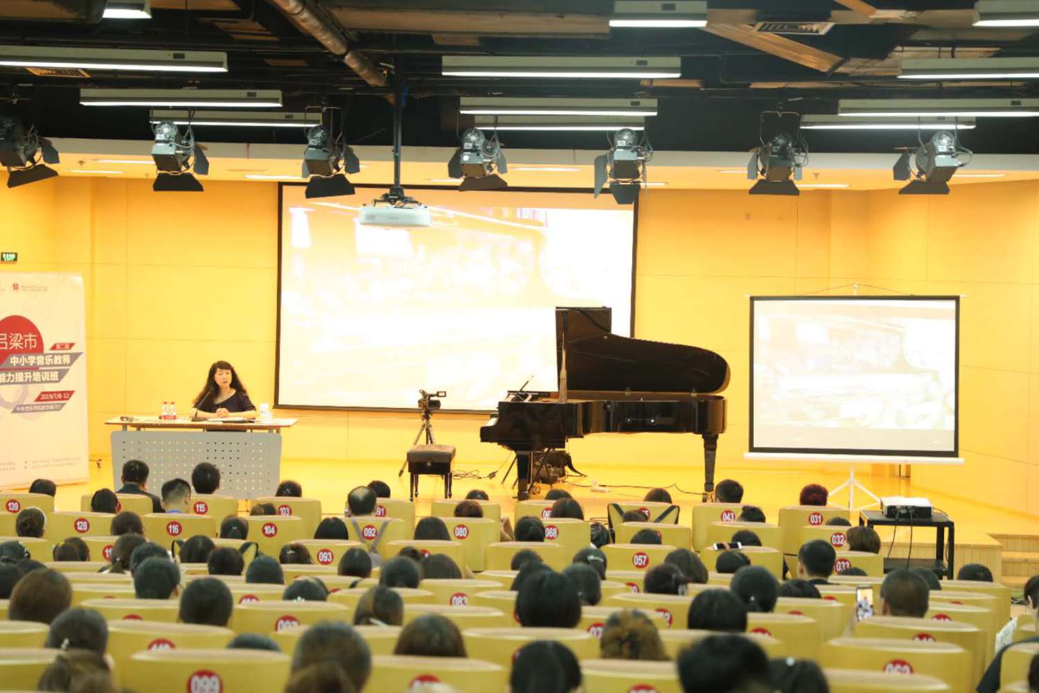 2019年7月11日上午在教学楼701教室,星空彩票ios版中心版钢琴系教授、星空彩票ios版中心版鼓浪屿钢琴学校校长李昕为吕梁市200名中小学音乐教师开讲了题为《从巴洛克时期到近现代——漫步西方音乐大师钢琴名作 走进魅力无限的音乐艺术世界》的音乐欣赏课。