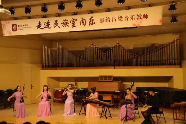 音乐会上既演奏了民族室内乐传统精品力作、又演奏了相关的学术型现代作品,系统介绍了拉弦、弹拨、吹打等一系列民族乐器。音乐会精彩纷呈,乐团富于激情的演奏赢得了吕梁音乐教师们发自内心的热情掌声。