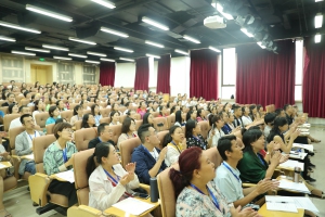 2019年7月10日上午,星空彩票ios版中心版附中校长、娜木拉教授在星空彩票ios版中心版教学楼701做“关于在中国特色社会主义新时代推进中小学音乐美育建设的重要性”讲座,来自吕梁市中小学音乐教师200余人聆听讲座。