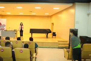 下午,我校作曲系视唱练耳教研室郝卓亚教授在同一地点开展了“用视唱来练耳”讲座。在讲座的前半部分,她结合丰富的音乐片段,为现场学员细致分析了音乐的五个基本要素,即速度、力度、音高、节奏、音色。在速度与力度方面,她强调乐谱上的每个速度与力度记号都是音乐中至关重要的部分,不同的记号有着细微但截然不同的意义,因此作为一名音乐工作者,应对乐谱上的标注有敏锐的感知;在音高与音色上,音调与音区的高低、音乐的上下行、音色的变化带来的都是不同的情感效果,她启发现场教师最大限度发挥想象力,并以此来引导学生来体验音乐;在节奏上,她展示了不同的记谱所展现出的完全不同的音乐风格,并细致分析了几种常见的节拍类型,让大家对节奏有了更深入的了解。在讲座的后半部分,她以法国作曲家圣-桑的《动物狂欢节》作为示例,带领学员上了一堂生动的视唱练耳课。在课上,她主要引导大家“做”出了音乐的五大要素,使得现场深刻感受到这些要素是如何有机而合理地组合在一起,并且营造出了何种美妙的效果。整场讲座,郝卓亚教授始终从“要听什么”、“怎么听”、“如何建议别人听”这几个角度来引导现场学员,并强调学员教师们以后授课时可以从多角度启发、提问学生。讲座圆满举行,令在座的200位教师受益匪浅。