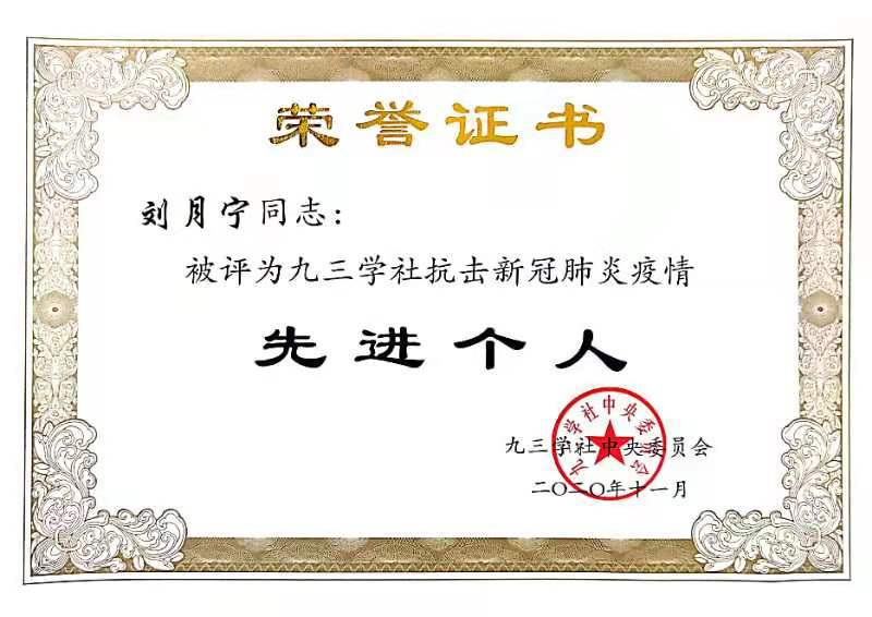 在此向刘月宁教授表示祝贺!