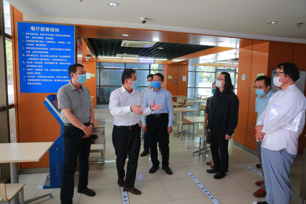 5月26日上午,北京市教委副主任黄侃到我校检查疫情防控工作,校党委书记赵旻陪同调研,汇报了我校疫情防控总体情况和学生返校复课疫情防控预案。
