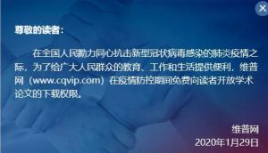 2.在疫情防控期间,维普网也将免费向读者开放学术论文的下载权限,链接如下: