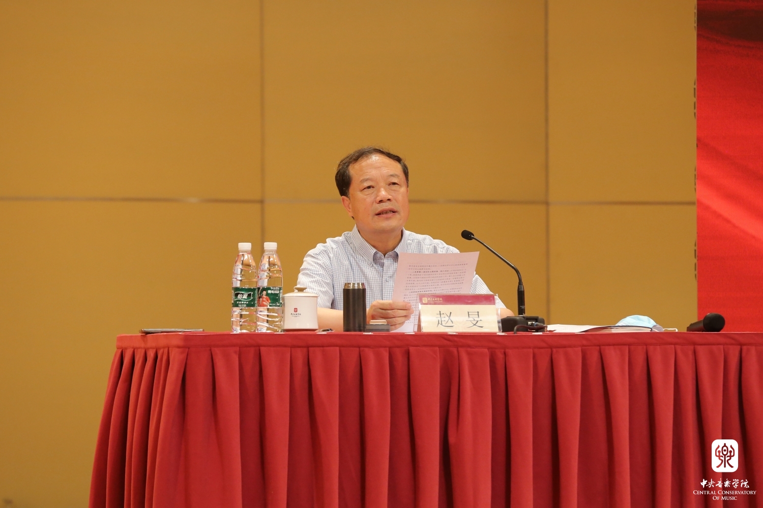 赵旻从五个方面对新时代党的建设的主要任务进行阐述:一是学习贯彻习近平新时代中国特色社会主义思想,至关重要的是要牢牢把握这一科学理论的世界观和方法论,坚持好、运用好贯穿其中的马克思主义立场观点方法,用以认识世界、改造主观世界、作出决策和解决问题;强调要学懂弄通这一科学理论的精髓要义,指导实践,促进工作。二是进一步认识“两个确立”的重要意义。“两个确立”是深植于我党深厚历史实践积淀之中所形成的一种“逻辑必然”,具有历史逻辑的完全自洽性和必然性;是党面对世界百年未有之大变局稳航定舵的实践必然。准确探析“两个确立”所蕴含的深刻内涵,切实做到“两个维护”是全党深刻领悟党的二十大精神亟须完成的重大政治任务。三是建设思想过硬的干部队伍。全面建设社会主义现代化国家干部队伍是基础,办好学校的事情,干部队伍是关键。要坚持党管干部原则,把新时代好干部标准落到实处,树立选人用人正确导向,建设忠诚干净担当的高素质专业化干部队伍和人才队伍。要加强干部思想建设,严格干部选任政治标准,强化年轻干部多岗位历练,持续加强干部监督管理。四是增强为党育人、为国育才的政治自觉。自觉把握国之大者对高校工作的战略要求,持续加强思想政治建设,深刻认识自身肩负的政治责任,始终牢记为党育人为国育才的初心使命,培养德智体美劳全面发展的社会主义建设者和接班人,落实在学校就是培养德艺双馨堪当文艺大任的艺术人才。要做到抓好思政课程和课程思政建设,推进思想政治工作守正创新,加强校风学风和校园文化建设,严抓师德师风。五是涵育政治生态、营造风清气正校园氛围。要严格落实全面从严治党“两个责任”;充分发挥党内监督主导作用;健全“三不腐”一体推进机制;统筹推进制度和廉洁文化建设,把政治标准融入制度建设,将核心价值、优秀文化、精神传承融入制度体系。