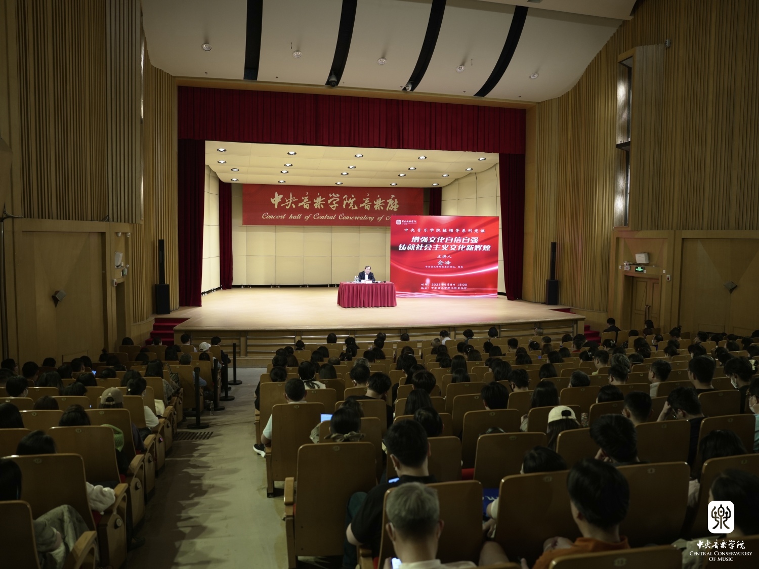校长俞峰紧扣“增强文化自信自强 铸就社会主义文化新辉煌”主题,围绕深入学习党的二十大精神和习近平总书记关于文艺工作的重要论述,结合星空彩票ios版中心版的“双一流”建设和实践,为全校党员师生们上了一堂深入人心的党课。