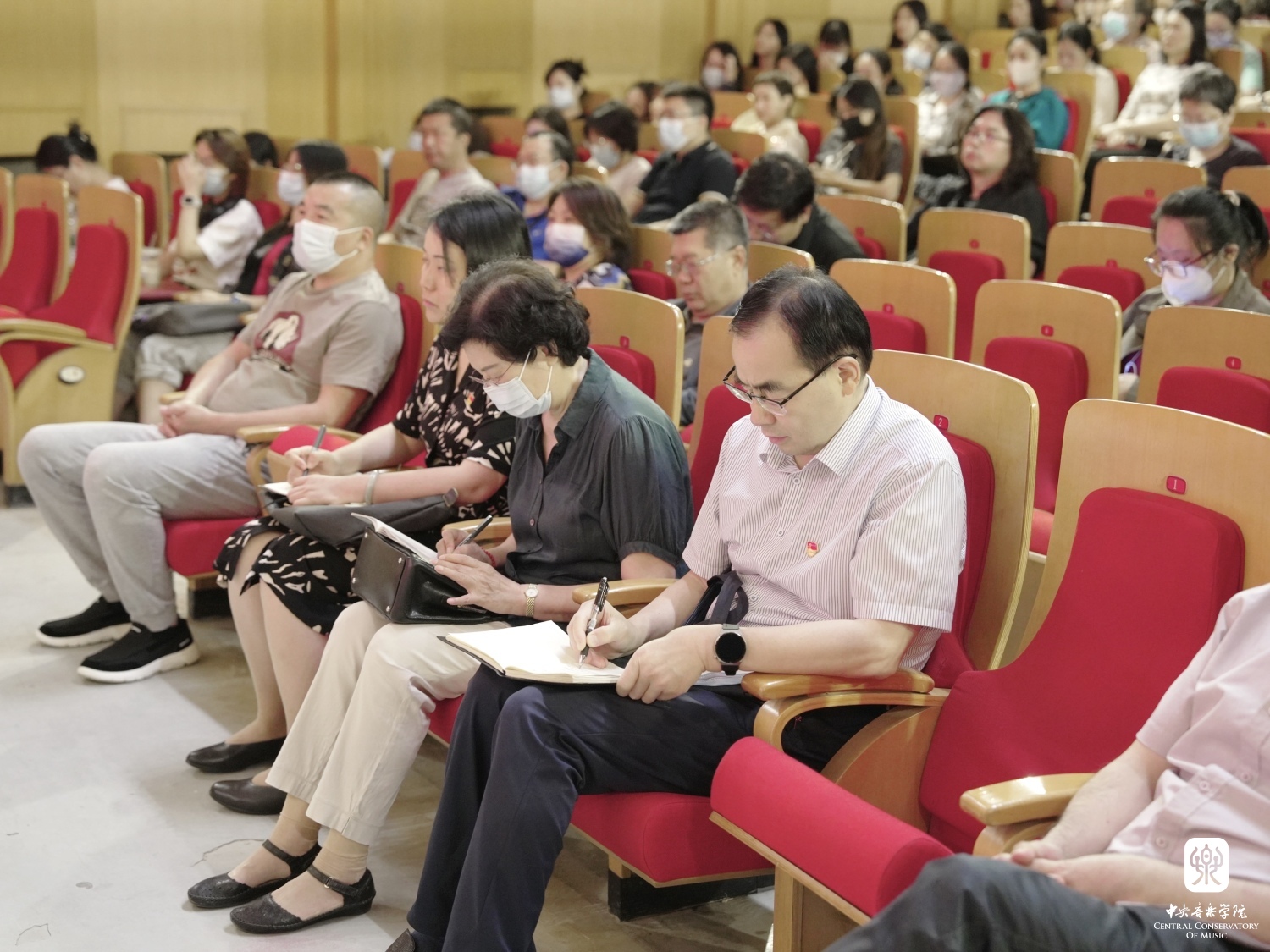 俞峰结合学校实际工作,从“举旗帜、聚民心、育新人、兴文化、展形象”五个方面逐字逐句剖析了党的二十大报告在推进文化自信自强方面做出的重要部署,并强调聚焦“双一流”建设,贯彻落实党的二十大精神,特别是对教育、科技、人才、文化文艺事业作出的重大决策部署,是学校当前和今后一个时期首要政治任务。一是要切实把学习贯彻党的二十大精神引向深入,紧密结合党中央在全党开展的主题教育,面向党员干部开展多形式、分层次的教育培训,紧密结合新时代音乐事业和星空彩票ios版中心版工作实际,统筹抓好全校师生学习培训。二是要坚守人民立场,创作更多增强人民精神力量的优秀作品。近年来,学校坚持以“两条腿走路”,一方面坚持人民为中心的创作导向,成立“中国音乐创作中心”,创作了大型电视专题片《领航》配乐、冬奥会主题曲《雪花》等大量扎根人民的作品,另一方面创作面向现代化、面向世界、面向未来的优秀作品,推向美国纽约卡内基音乐厅等世界舞台,向世界展示中华优秀文化。同时,创新“音乐党课”、音乐思政课,以毛泽东同志和习近平同志两次文艺座谈会上的讲话时间节点发起创立了“5.23”“10.15”艺术节等,积极践行艺术为人民服务等。三是要强化德艺双修,建设规模宏大的音乐人才队伍。多年来,学校坚持为党育人、为国育才,落实立德树人根本任务,培养出曾韵、梅第扬等有世界竞争力的拔尖音乐人才,同时推进实施“大中小”一体化建设和音乐专业学位改革,扎实开展新时代文明实践中心工作,选派优秀毕业生以“文艺宣讲师”身份奔赴西藏日喀则、青海化隆等祖国偏远地区,服务社会,服务人民,用文艺把党的温暖送到千家万户等。