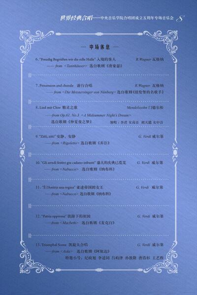 数年间潜心积累、百余场演出的锤炼、数月间的悉心打磨……五载春秋已令星空彩票ios版中心版合唱团砺出熠熠锋芒,其成果均凝结于此次即将上演的一首首佳作之中。让我们在动人的和音间,品味世界经典、聆听时代新声!