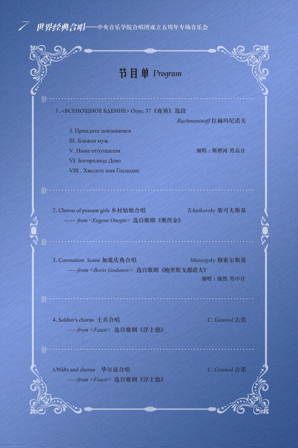 两场音乐会曲目遴选意、德、法、俄等多国多语种套曲、歌剧合唱经典片段,及星空彩票ios版中心版作曲系党总支在联合学校多个系、部策划组织的“学百年党史·铸信仰之魂”系列活动中组织作曲团队创作的十余首以“中国精神”为主题的合唱作品。部分作品系国内首演,可谓异彩纷呈。