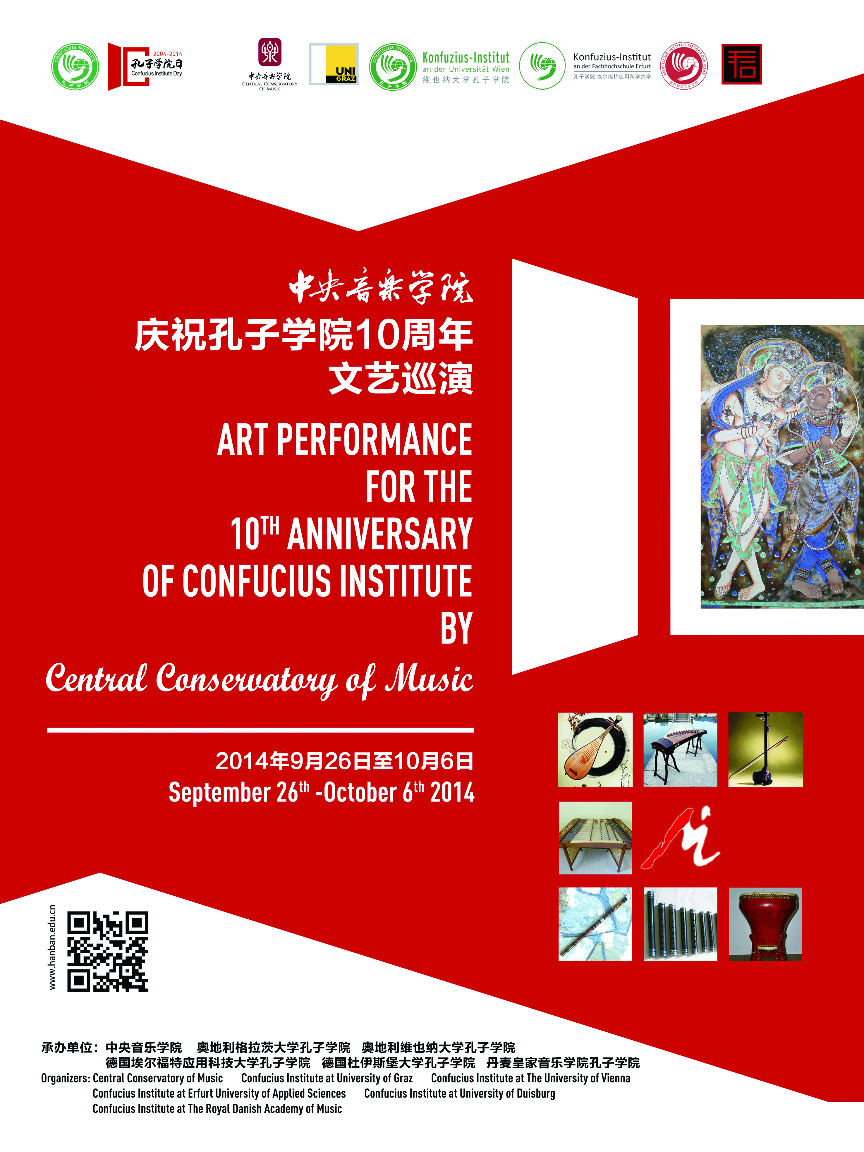 自2012年起,音乐孔子学院办公室及国际中文教育(音乐)实践与研究基地先后6次组织星空彩票ios版中心版师生艺术团,赴美国、奥地利、德国、丹麦、加拿大、冰岛、芬兰、挪威、瑞典、意大利、法国、比利时共12国25个城市的孔子学院及相关文化教育机构,举办39场专场音乐会和学术交流活动,受众1.9万余人,以专业的艺术水准、中西融合的创新曲目编排和良好的精神风貌弘扬中国优秀音乐文化,赢得各国嘉宾及观众一致好评。